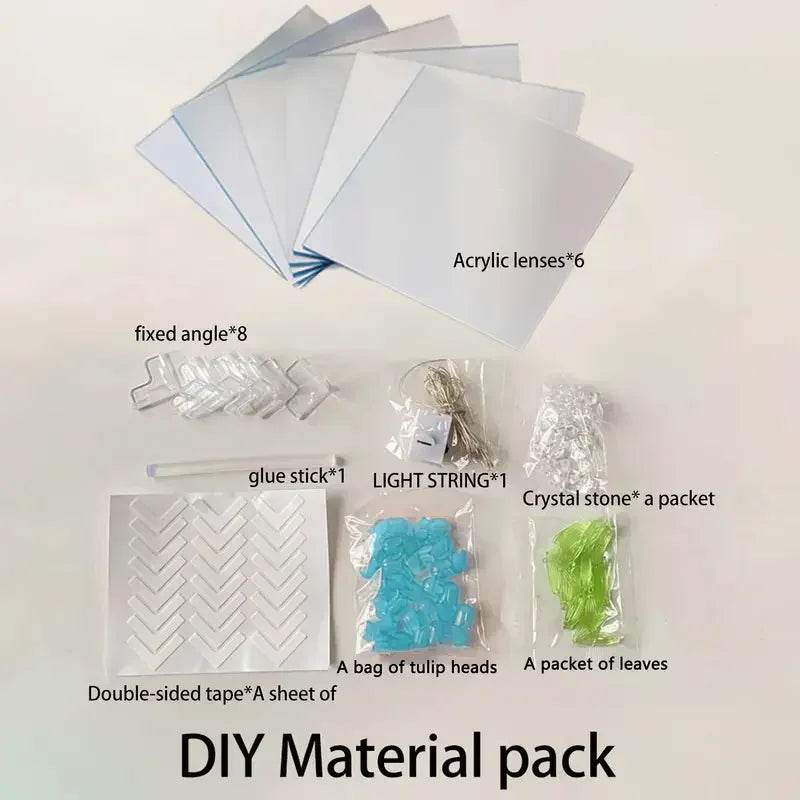 DIY Tulip Mirror Cube Lamp – Handmade Romantic Flower Table Light for Home Decor -