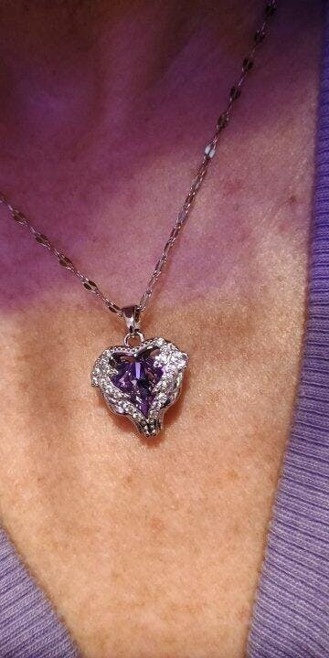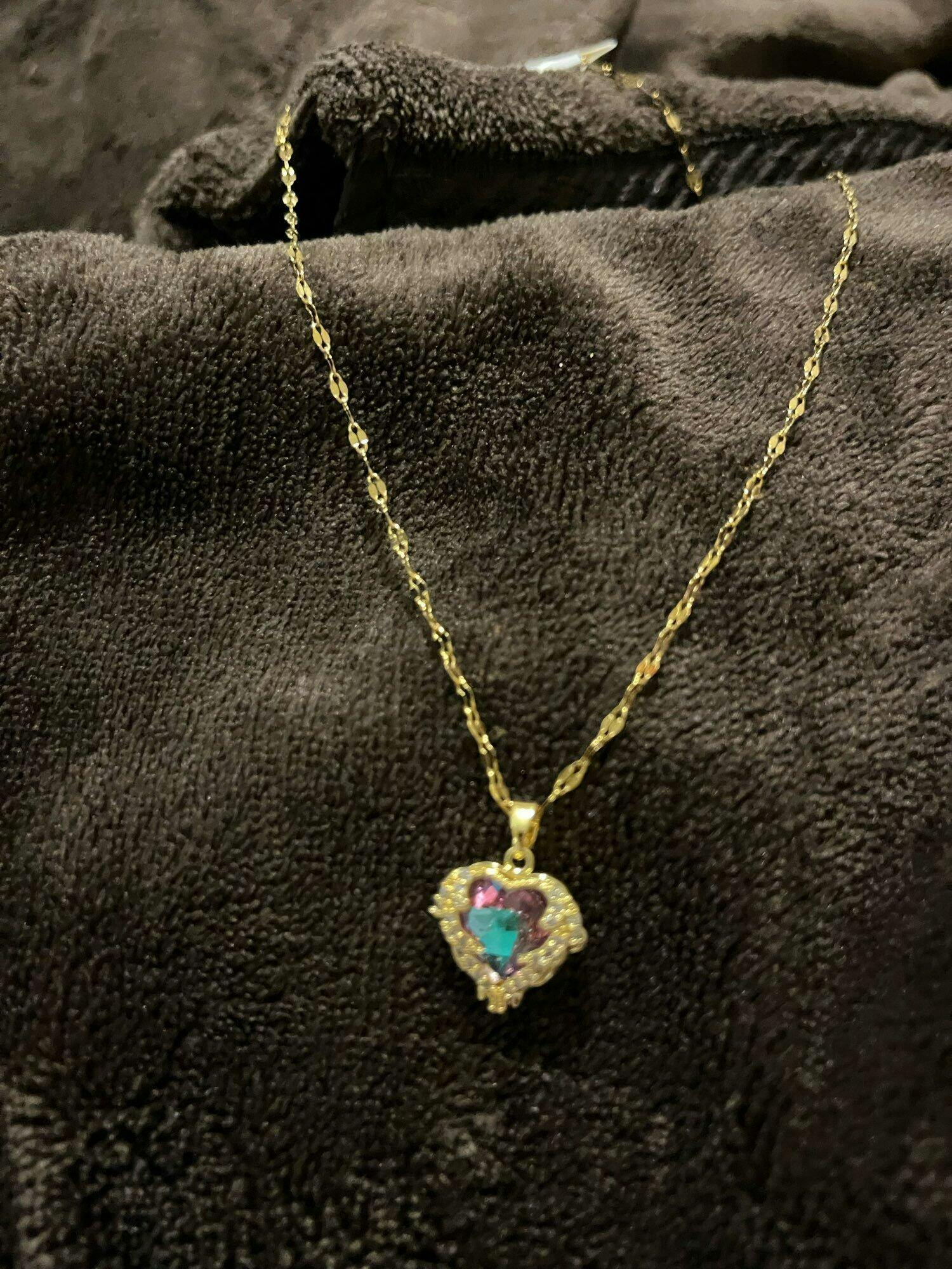 The necklace is crafted from premium 316L stainless steel with a colorful crystal heart pendant.